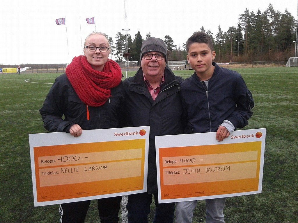 Årets stipendiater som vardera fick 4000 kronor. Nellie Larsson flickor 98-01, och John Boström pojkar 99-00. Motiveringen var: